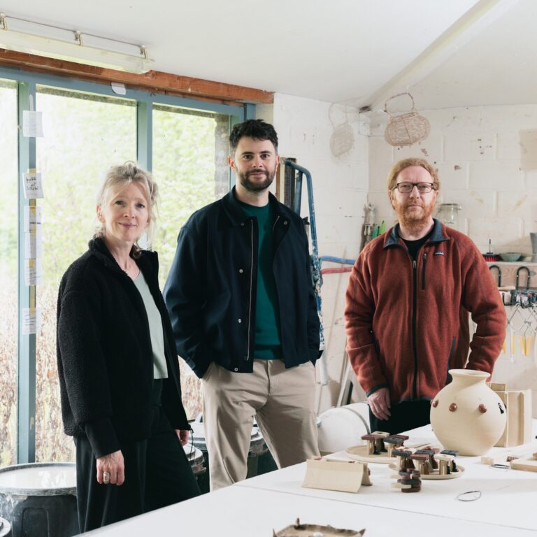 Kris De Clercq et Aster Caemaert, mouliste et céramiste, et Thibault Huguet, designer industriel