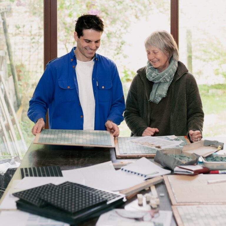 Françoise Lombaers, mosaïste, et Guillaume Slizewicz, designer/chercheur