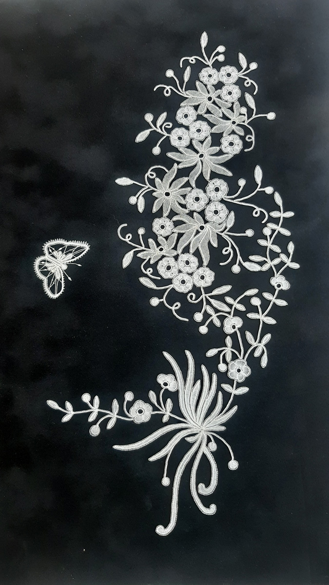 Caroline Guerriero diplômée de la section dentelle de l’Institut Supérieur Plus Oultre à Binche. A travaillé pendant 32 ans comme dentellière animatrice pour le Centre de la Dentelle et des Métiers d’Art de Binche et a participé à de nombreuses expositions en Belgique et à l’étranger (Italie, France, Suisse, Allemagne, Estonie, Espagne, Taiwan…). Elle a obtenu plusieurs prix en Belgique et à l étranger. Elle a reçu la Médaille du mérite à la Région Wallonne et elle donne des formations de dentelle aux fuseaux .